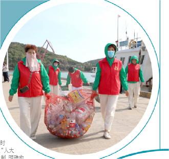 浙江舟山“東海漁嫂”巡邏隊(duì)活躍在海岸線上,深入開展海上垃圾回港分類行動(dòng)。 袁浩程 攝