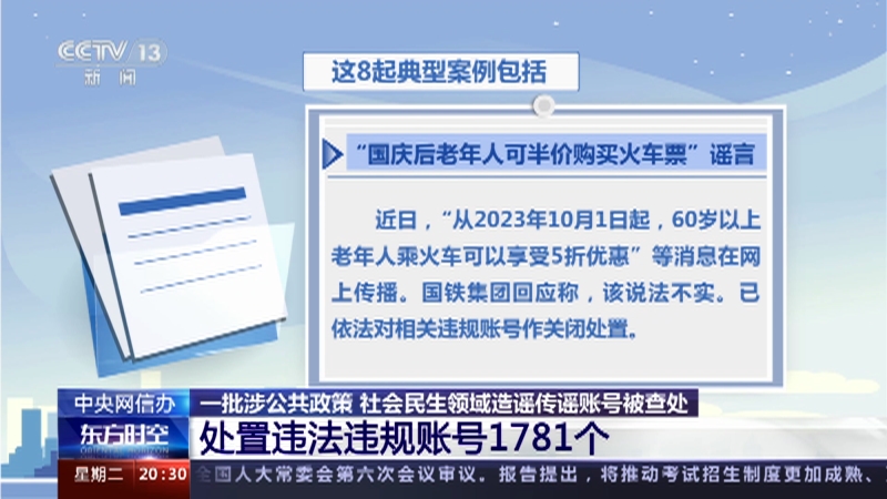 中央網(wǎng)信辦 一批涉公共政策 社會(huì)民生領(lǐng)域造謠傳謠賬號(hào)被查處 處置違法違規(guī)賬號(hào)1781個(gè)