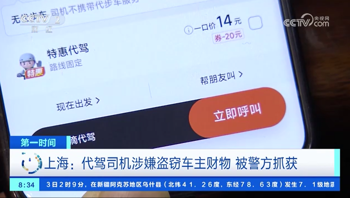 上海:代駕司機(jī)涉嫌盜竊車主財(cái)物 被警方抓獲