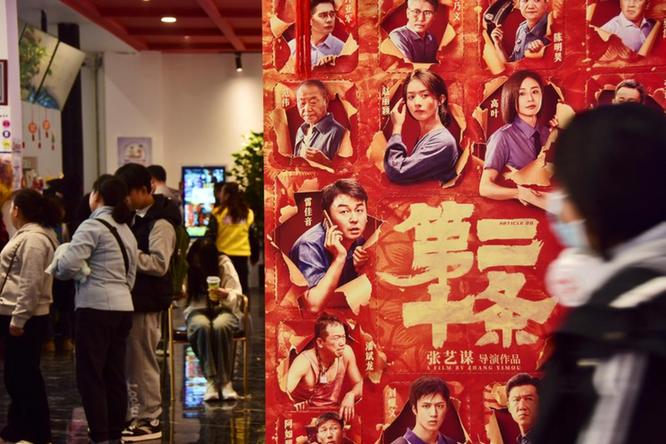 2月16日,觀眾從杭州一家影院的春節(jié)檔電影海報(bào)前走過(guò)。新華社發(fā)(龍巍攝)