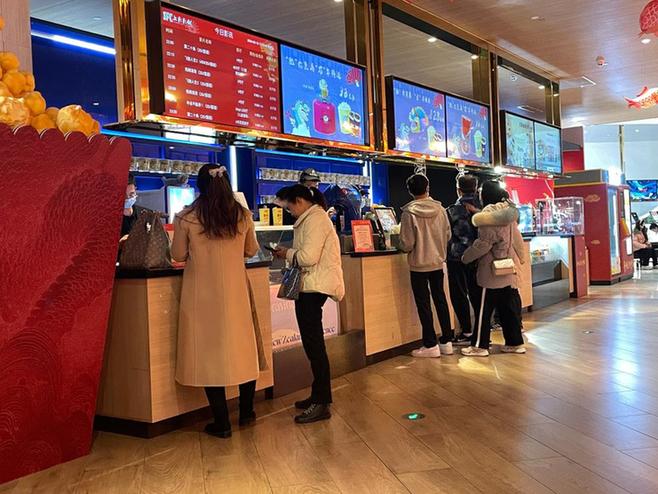 2月16日,上海市某電影院購(gòu)票處,人們正在購(gòu)票。新華社記者程思琪 攝