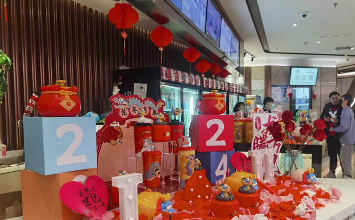 2月15日,上海一家影城展示的電影年貨。 新華社記者 許曉青攝