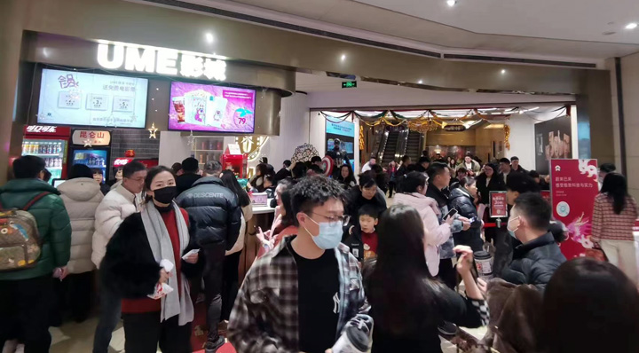 2月14日,UME影城(南通中南CBD店)等候區(qū)人流如織。(受訪(fǎng)對(duì)象供圖)