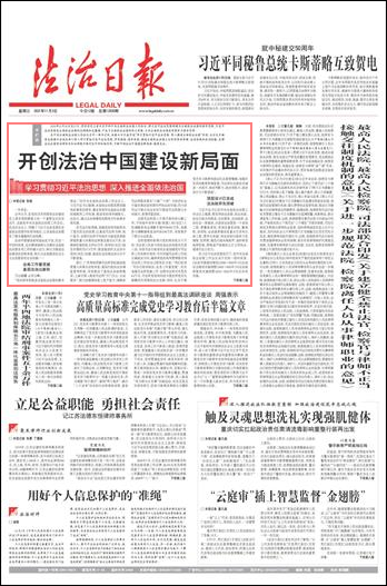 在中央全面依法治國工作會議召開一周年之際,本報從11月3日起開設“學習貫徹習近平法治思想 深入推進全面依法治國”專欄,全方位多維度總結推介各地各部門深入學習貫徹習近平法治思想,學思踐悟,指導實踐,推進全面依法治國上臺階的具體舉措、生動實踐和成功經驗,發(fā)揮法治在國家治理體系和治理能力現(xiàn)代化中的積極作用,不斷開創(chuàng)法治中國建設新局面。敬請關注。