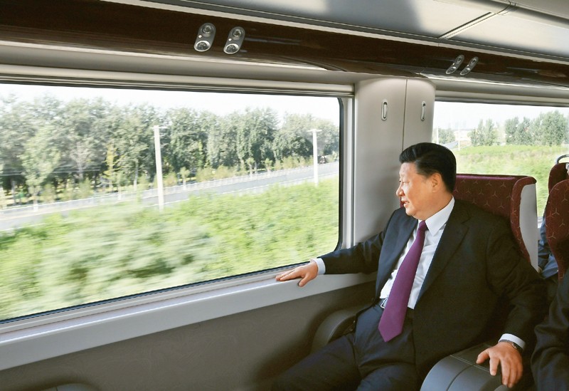 2019年9月25日上午,北京大興國際機(jī)場(chǎng)投運(yùn)儀式在北京舉行。中共中央總書記、國家主席、中央軍委主席習(xí)近平出席儀式,宣布機(jī)場(chǎng)正式投運(yùn)并巡覽航站樓。這是習(xí)近平乘坐軌道列車前往北京大興國際機(jī)場(chǎng)。 新華社記者 謝環(huán)馳/攝