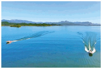圖為密云水庫綜合執(zhí)法大隊在水面上巡查。