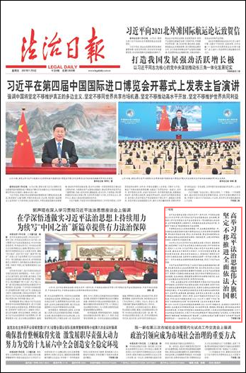 一年來,法治建設(shè)各項工作緊緊圍繞學習貫徹習近平法治思想來布局謀劃,扎實貫徹中央全面依法治國工作會議精神,把黨中央關(guān)于全面依法治國的部署要求落到實處。黨領(lǐng)導(dǎo)全面依法治國的體制機制更加健全:中央全面依法治國委員會負責全面依法治國的頂層設(shè)計、總體布局、統(tǒng)籌協(xié)調(diào)、整體推進,各級黨政主要負責人認真履行推進法治建設(shè)第一責任人職責;法治中國建設(shè)的頂層設(shè)計日益完善:印發(fā)《法治中國建設(shè)規(guī)劃(2020-2025年)》,國家“十四五”規(guī)劃對“全面推進依法治國”作出重要部署,《法治社會建設(shè)實施綱要(2020-2025年)》《法治政府建設(shè)實施綱要(2021-2025年)》相繼出臺;法治服務(wù)大局的作用不斷強化:法治建設(shè)為京津冀協(xié)同發(fā)展、長江經(jīng)濟帶發(fā)展、粵港澳大灣區(qū)建設(shè)、黃河流域生態(tài)保護和高質(zhì)量發(fā)展、鄉(xiāng)村振興等國家重大戰(zhàn)略提供法治保障;人民群眾的獲得感持續(xù)增強:從開門立法到執(zhí)法司法規(guī)范化,從家門口的公共法律服務(wù)到“誰執(zhí)法誰普法”全民普法,從不斷發(fā)展的新時代“楓橋經(jīng)驗”到助推社區(qū)的“微治理”,從重拳出擊懲治“飯圈”亂象到“打傘破網(wǎng)”的掃黑除惡常態(tài)化……法治護佑人民,人民信仰法治。實踐證明,習近平法治思想是引領(lǐng)法治中國建設(shè)實現(xiàn)高質(zhì)量發(fā)展的思想旗幟。