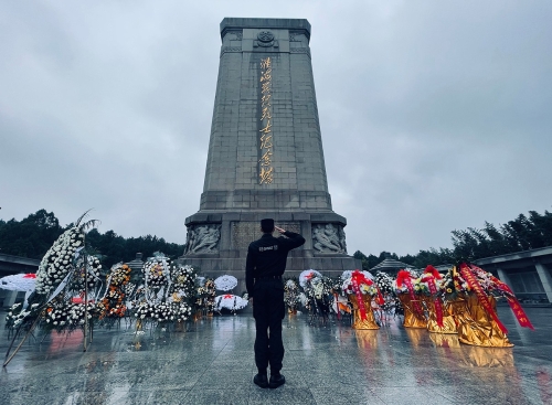 4月2日,徐州鐵路公安處特警在淮海戰(zhàn)役烈士紀(jì)念塔前向英烈肅立敬禮。清明期間,徐州鐵路公安處組織民警來(lái)到淮海戰(zhàn)役烈士紀(jì)念塔園,向英烈敬獻(xiàn)花籃寄托哀思,緬懷革命先烈,傳承紅色基因。