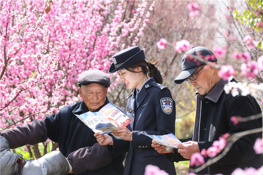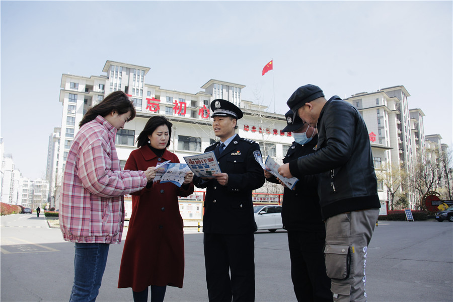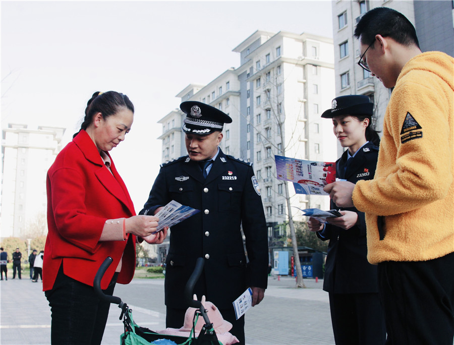 圖為民警在轄區(qū)群眾中開展反詐宣傳活動。