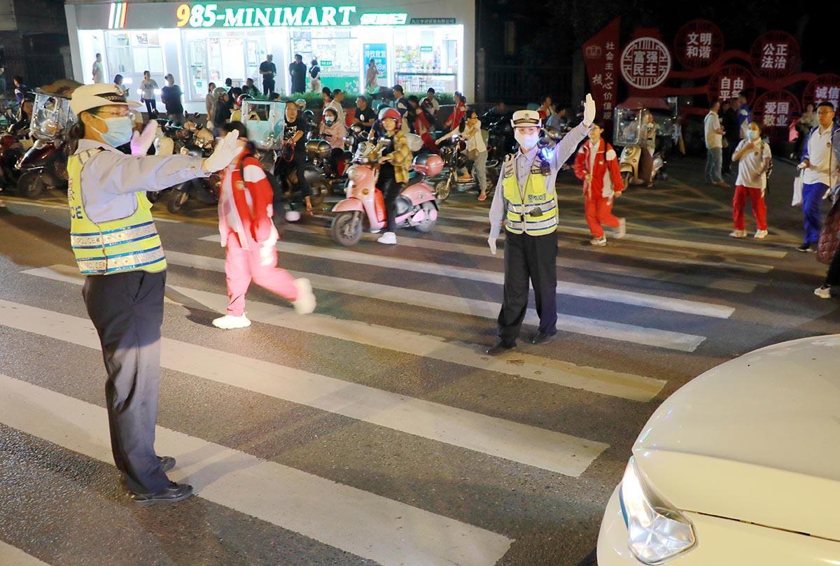 5月19日,江西省九江市公安局交管支隊(duì)第一大隊(duì)因夜間施工在周邊交通流量較大的學(xué)校增設(shè)夜間護(hù)學(xué)崗,增派警力疏導(dǎo)指揮交通,確保放學(xué)高峰期道路安全通暢。