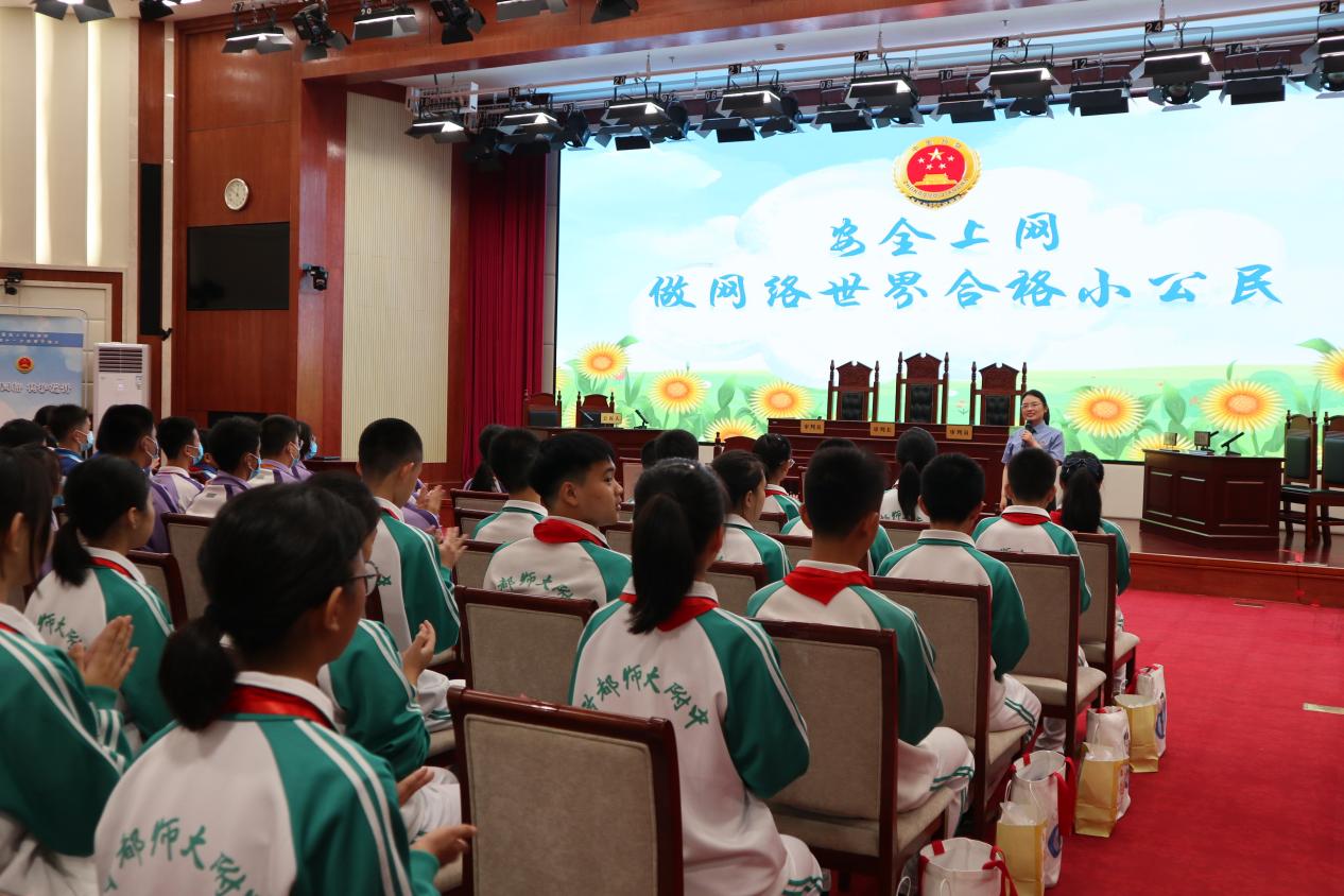 未成年人防范意識薄弱,不僅容易成為網絡犯罪的受害者,也容易一時糊涂走上網絡犯罪道路。盧晨以一起未成年人編造、故意傳播虛假恐怖信息罪而被判刑的案例,告誡同學們拒絕網絡傳謠,不做惡意鍵盤俠?!吧硖幓ヂ?lián)網時代,我們要不斷增強法治意識和自我保護意識,這樣才能在網絡這顆‘快樂星球’自由翱翔?!北R晨說。