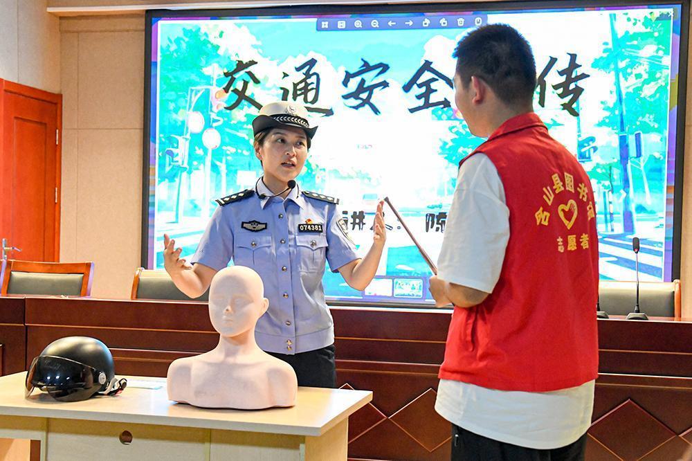 7月25日,安徽省馬鞍山市含山縣公安局交管大隊在縣圖書館開展“文明交通 你我同行”主題宣傳活動,為新加入的交通安全志愿者們上交通安全課,營造良好夏季道路交通秩序,預(yù)防和減少道路交通事故的發(fā)生。