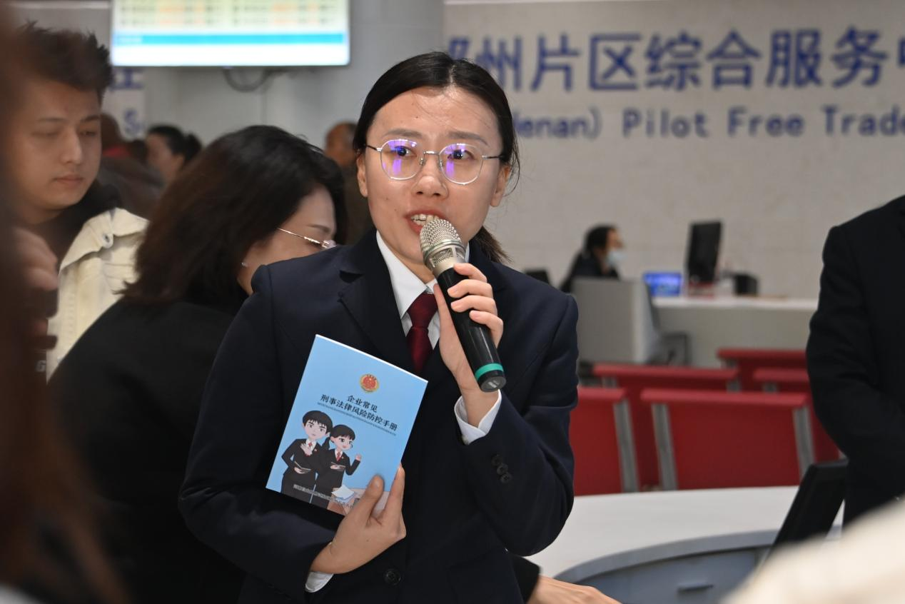 圖為檢察官向記者介紹《企業(yè)常見刑事法律風(fēng)險(xiǎn)防控手冊(cè)》。鐘心宇 攝