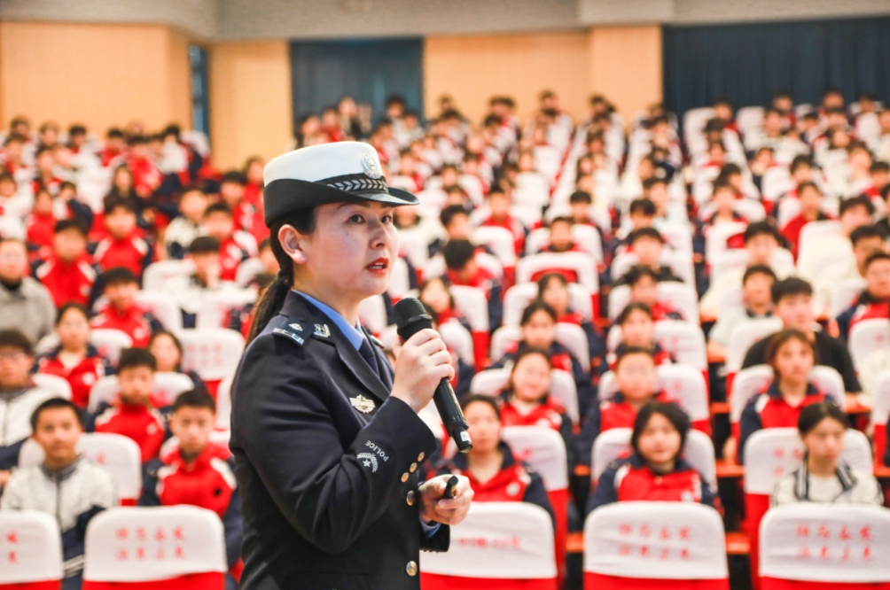 圖為民警走進贛州二中開展“法治護苗 共護成長”交通安全宣講活動。