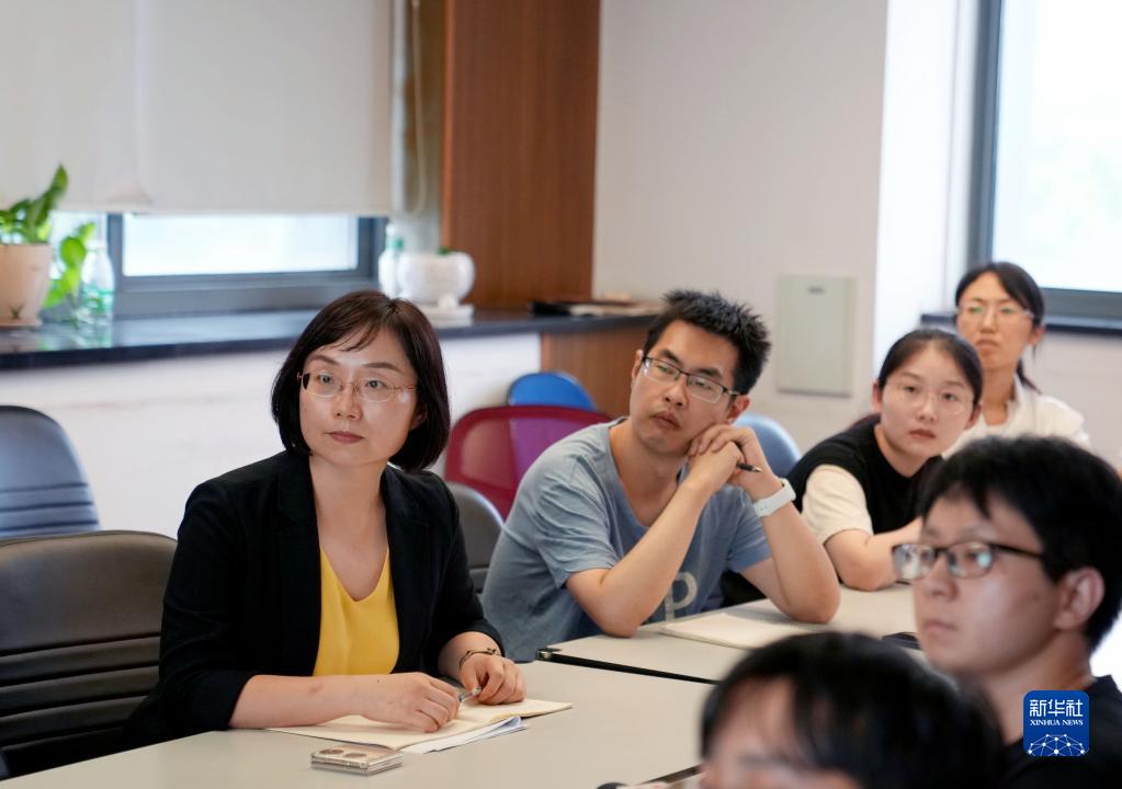 陳玲玲(左一)在中國(guó)科學(xué)院分子細(xì)胞科學(xué)卓越創(chuàng)新中心和學(xué)生們開會(huì)(2022年9月13日攝)。新華社記者 劉穎 攝