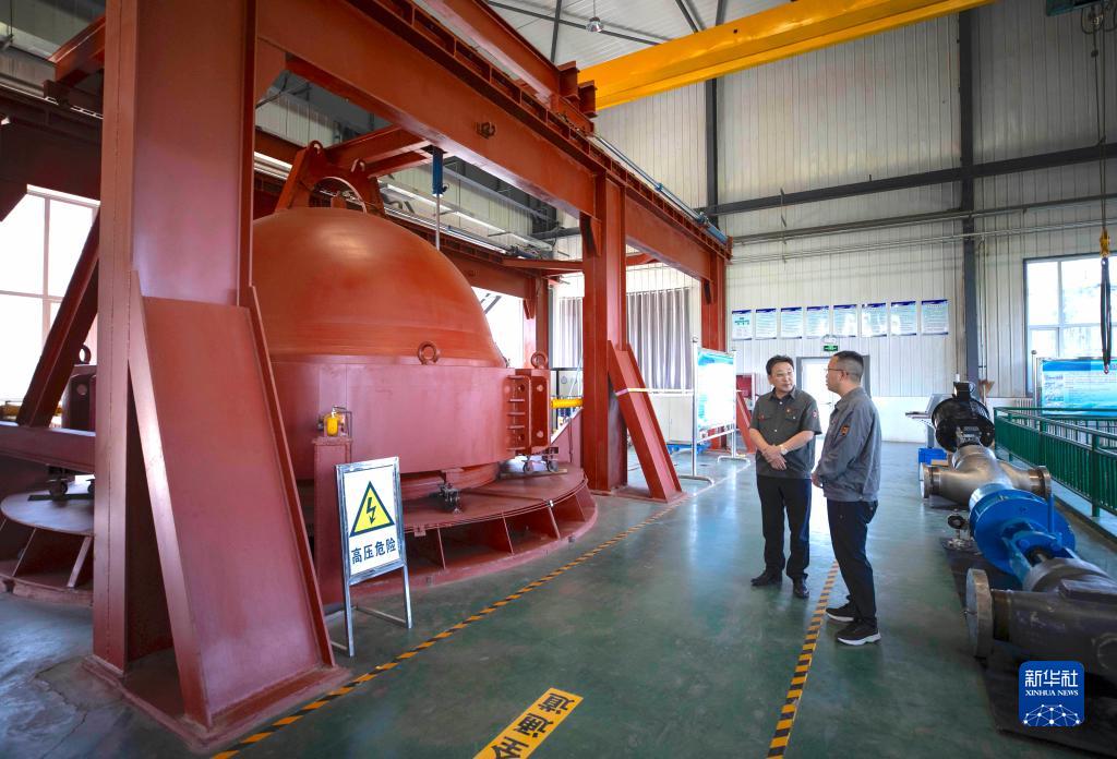 在位于寧夏吳忠市的吳忠儀表有限責任公司自動化產(chǎn)業(yè)園數(shù)字化裝配車間內,馬玉山(右)與技術人員交流(9月12日攝)。 新華社記者 楊植森 攝