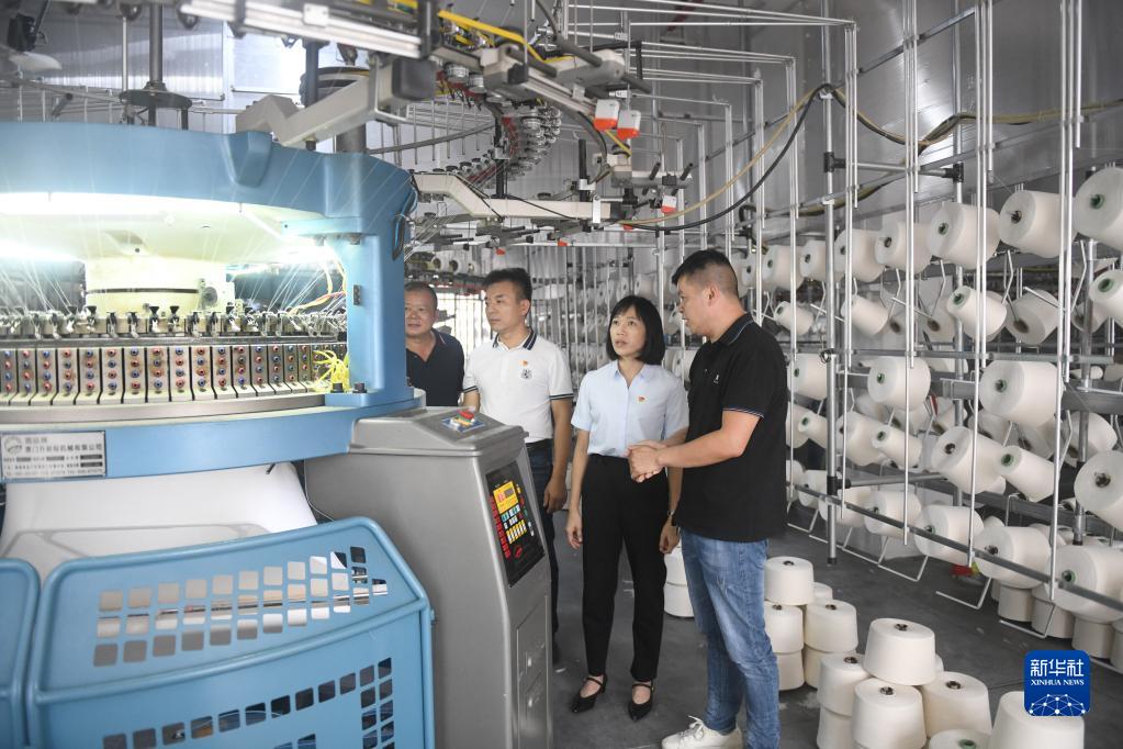 陸秀興(右二)在佛山市禪城區(qū)張槎街道古灶村內一處產業(yè)園了解企業(yè)投資生產情況(2022年9月7日攝)。新華社記者 盧漢欣 攝