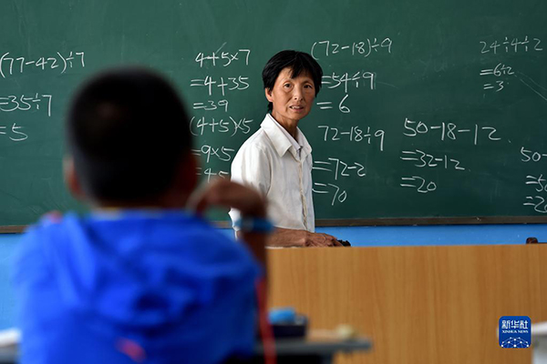 劉桂珍在山西省代縣王家會小學(xué)上數(shù)學(xué)課(資料照片)。新華社記者 詹彥 攝