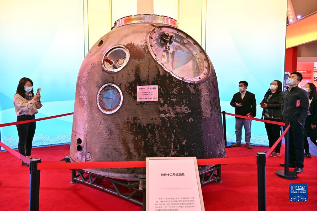 10月8日,觀眾參觀拍攝神舟十二號返回艙。新華社記者 李鑫 攝