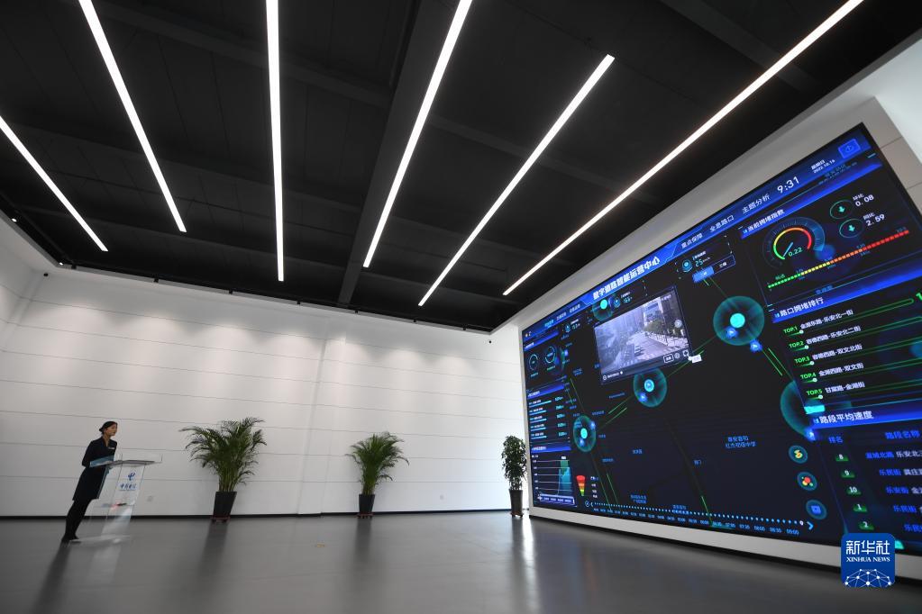 10月16日,河北雄安新區(qū)中國電信智慧城市產業(yè)園工作人員展示數字道路運營系統(tǒng)。新華社記者 朱旭東 攝