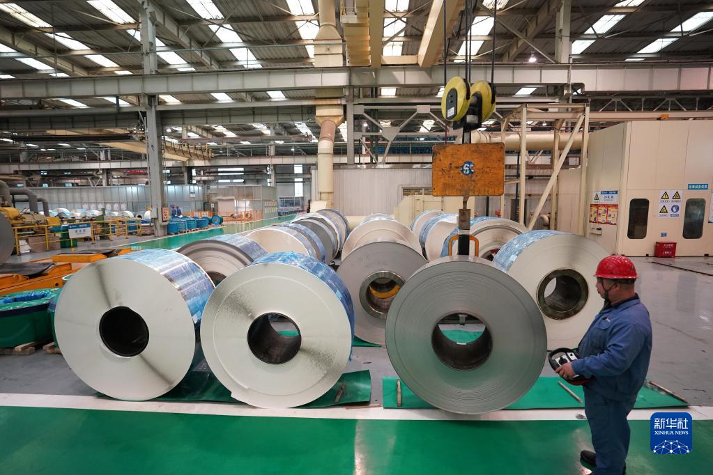 中國寶武山西太鋼不銹鋼精密帶鋼有限公司生產車間一角(10月16日攝)。新華社記者 詹彥 攝