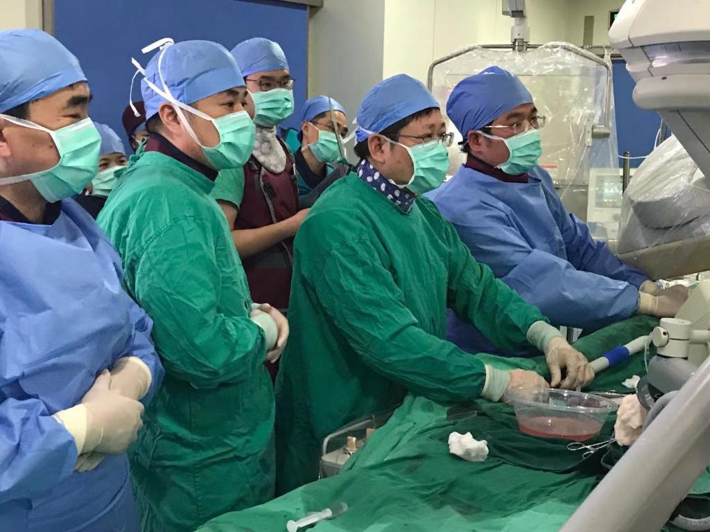 圖為潘文志(右一)及其團隊正在實施經導管瓣膜介入手術。