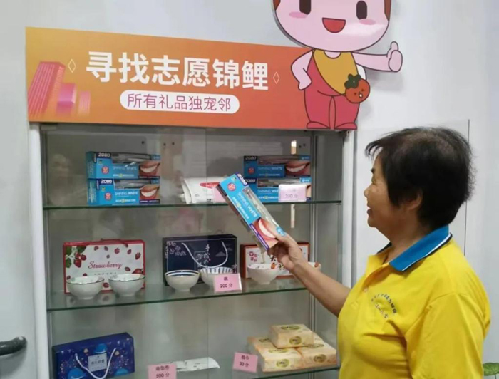 11月10日,社區(qū)居民在“全齡段公益時間銀行”用自己的志愿服務(wù)積分兌換獎品。(受訪社區(qū)供圖)