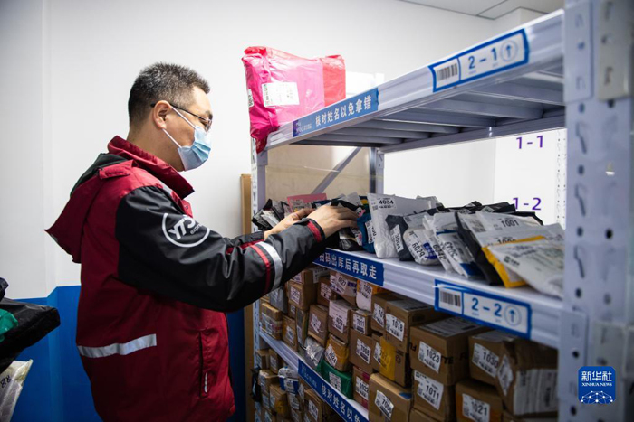11月8日,在圓通速遞湖南省長(zhǎng)沙市高橋分公司快遞存放點(diǎn),馬石光在整理快遞。新華社記者 陳思汗 攝
