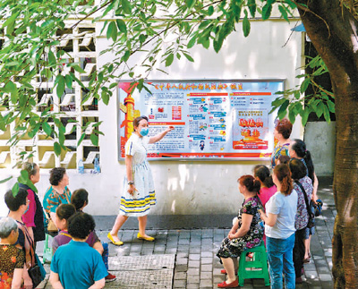 6月1日,在重慶市渝中區(qū)朝天門(mén)街道白象街社區(qū),街道司法所的工作人員正在向居民宣講《中華人民共和國(guó)民法典》。張錦輝攝(人民視覺(jué))