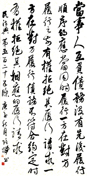 民法典第五百二十五條 當(dāng)事人互負(fù)債務(wù),沒有先后履行順序的,應(yīng)當(dāng)同時履行。一方在對方履行之前有權(quán)拒絕其履行請求。一方在對方履行債務(wù)不符合約定時,有權(quán)拒絕其相應(yīng)的履行請求。