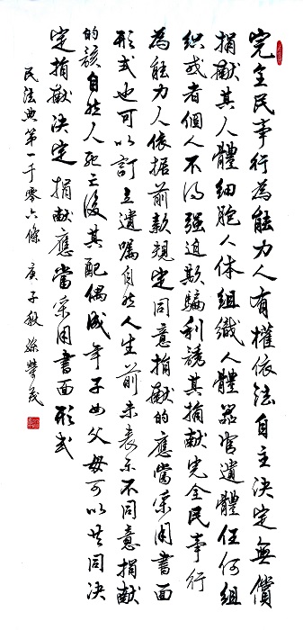 民法典第一千零六條 完全民事行為能力人有權(quán)依法自主決定無償捐獻(xiàn)其人體細(xì)胞、人體組織、人體器官、遺體。任何組織或者個(gè)人不得強(qiáng)迫、欺騙、利誘其捐獻(xiàn)。完全民事行為能力人依據(jù)前款規(guī)定同意捐獻(xiàn)的,應(yīng)當(dāng)采用書面形式,也可以訂立遺囑。自然人生前未表示不同意捐獻(xiàn)的,該自然人死亡后,其配偶、成年子女、父母可以共同決定捐獻(xiàn),決定捐獻(xiàn)應(yīng)當(dāng)采用書面形式。