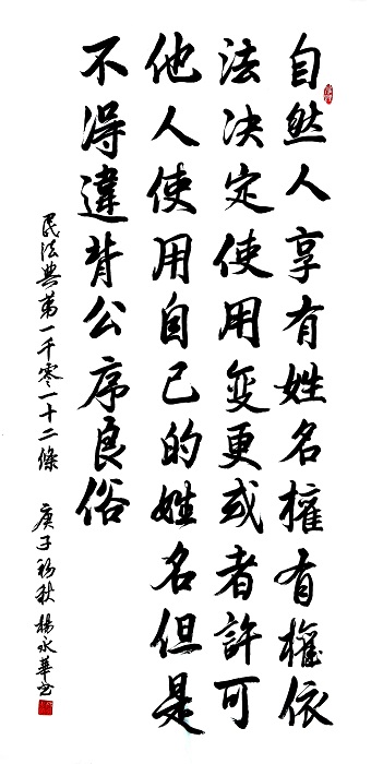 民法典第一千零一十二條 自然人享有姓名權(quán),有權(quán)依法決定、使用、變更或者許可他人使用自己的姓名,但是不得違背公序良俗。