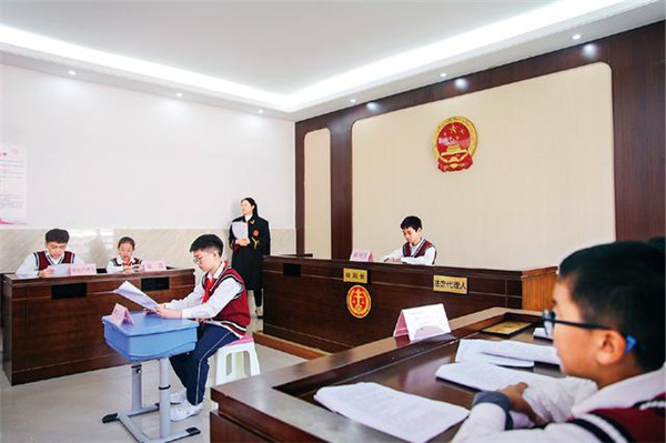 2020年10月30日,安徽省合肥市濱湖世紀(jì)社區(qū)在合肥師范附小三小開展“模擬法庭進(jìn)校園”活動。圖為當(dāng)日拍攝的模擬法庭“庭審”現(xiàn)場。新華社記者 曹力/攝