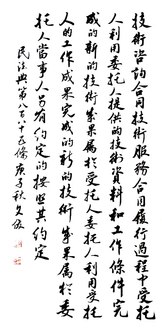 民法典第八百八十五條 技術(shù)咨詢合同、技術(shù)服務(wù)合同履行過(guò)程中,受托人利用委托人提供的技術(shù)資料和工作條件完成的新的技術(shù)成果,屬于受托人。委托人利用受托人的工作成果完成的新的技術(shù)成果,屬于委托人。當(dāng)事人另有約定的,按照其約定。