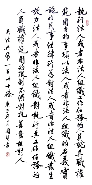 “書·法”活動(dòng)以書寫《中華人民共和國民法典》法條開筆,未來將對(duì)準(zhǔn)更多的法律。