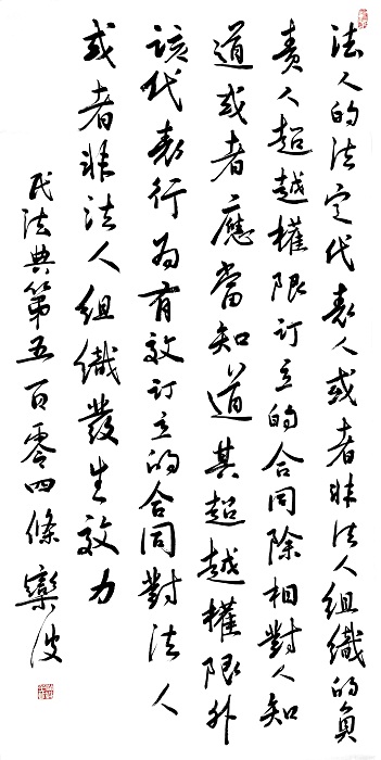民法典第五百零四條 法人的法定代表人或者非法人組織的負責人超越權(quán)限訂立的合同,除相對人知道或者應(yīng)當知道其超越權(quán)限外,該代表行為有效,訂立的合同對法人或者非法人組織發(fā)生效力。
