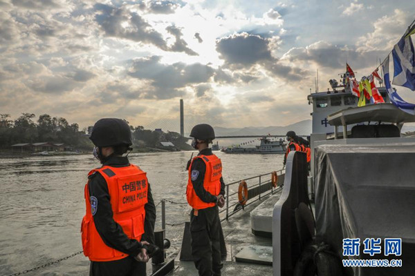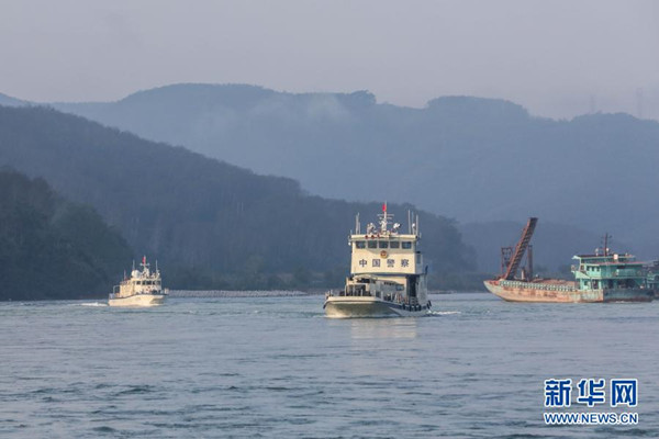 2月23日,第102次中老緬泰湄公河聯(lián)合巡邏執(zhí)法編隊啟航,中方執(zhí)法艇編隊巡航經(jīng)過瀾滄江景哈水域。 新華社發(fā)(張壽晨 攝)