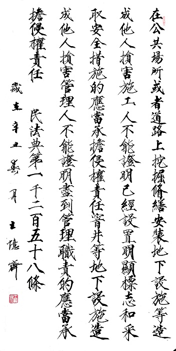 民法典第一千二百五十八條 在公共場所或者道路上挖掘、修繕安裝地下設(shè)施等造成他人損害,施工人不能證明已經(jīng)設(shè)置明顯標(biāo)志和采取安全措施的,應(yīng)當(dāng)承擔(dān)侵權(quán)責(zé)任。
