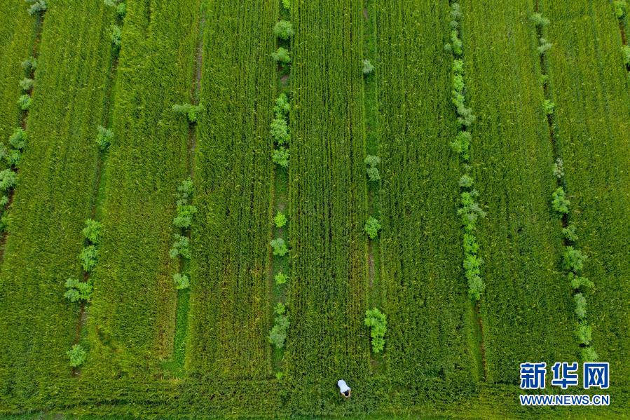 2020年6月23日,在四平市梨樹縣孤家子鎮(zhèn),忠元種植農(nóng)民專業(yè)合作社理事長宋忠元查看小冰麥長勢(無人機(jī)照片)。新華社記者 張楠 攝