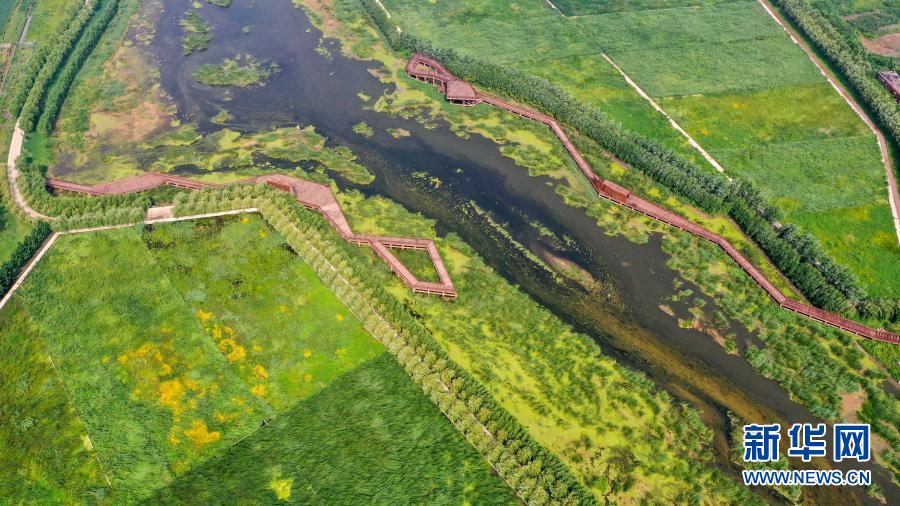 經(jīng)過遼河流域系統(tǒng)治理和生態(tài)修復(fù)后形成的四平市西湖濕地公園(2020年8月4日攝,無人機(jī)照片)。新華社記者 張楠 攝