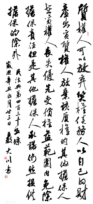 民法典第四百三十五條 質(zhì)權(quán)人可以放棄質(zhì)權(quán)。債務(wù)人以自己的財產(chǎn)出質(zhì),質(zhì)權(quán)人放棄該質(zhì)權(quán)的,其他擔(dān)保人在質(zhì)權(quán)人喪失優(yōu)先受償權(quán)益的范圍內(nèi)免除擔(dān)保責(zé)任,但是其他擔(dān)保人承諾仍然提供擔(dān)保的除外。
