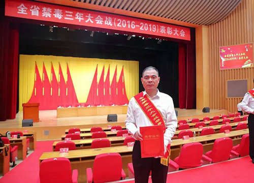 圖為張新建在海南省禁毒三年大會戰(zhàn)表彰大會上