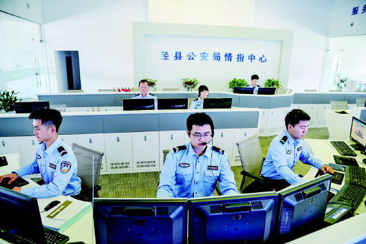 圖為涇縣公安局情報指揮中心民警正在接警。通訊員 王響寧 攝