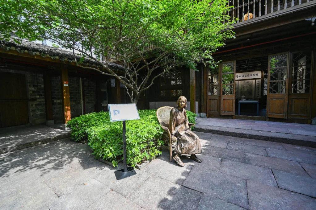 江南初夏,大樹蔭蔽之下,老宅里一小片黃花蒿在淅淅瀝瀝的梅雨滋潤下愈發(fā)青翠,黃花蒿旁的少女雕像眼帶笑意,仿佛與來往的游人述說著她與黃花蒿間奇妙的故事。