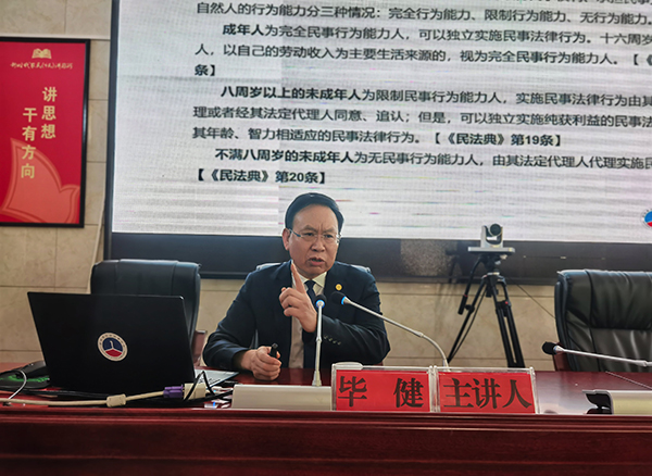 在此次培訓(xùn)會上,中國企聯(lián)維權(quán)工委委員、貴州省人民政府立法咨詢專家畢健為參會人員作了以“民法典中招商引資合同法、公司法的運用及案例解析”為主題的《民法典》學(xué)習(xí)輔導(dǎo)暨法治講座。畢健從《民法典》之法律概念和法律意識、《民法典》之制定歷程和重要意義、《民法典》之主要內(nèi)容和亮點特色、《民法典》之與年齡相關(guān)的自然人制度、《民法典》之法人制度、《民法典》之與鄉(xiāng)村振興相關(guān)制度等六個方面進行深入淺出的講解,特別針對政府招商引資合同存在的風(fēng)險與防范作了詳細的分析講解。參會人員紛紛表示獲益匪淺,希望政府多組織這樣的培訓(xùn)學(xué)習(xí)。