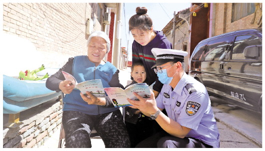 圖為運(yùn)城公安民警深入農(nóng)村開展道路交通安全宣傳,助力“三零”創(chuàng)建。山西省委政法委供圖