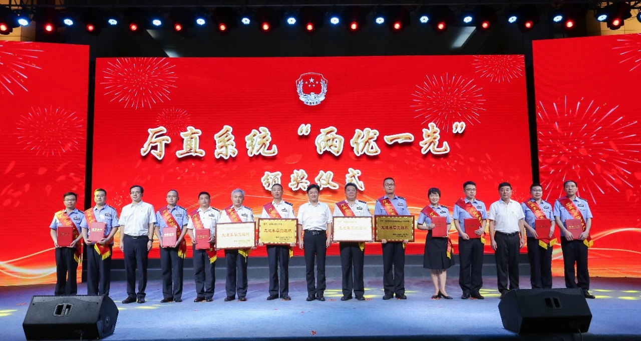 ▲江西省委政法委常務(wù)副書記林強(qiáng)、省政府副秘書長(zhǎng)吳龍強(qiáng)、省司法廳廳長(zhǎng)張強(qiáng)為廳直系統(tǒng)“兩優(yōu)一先”代表頒獎(jiǎng)