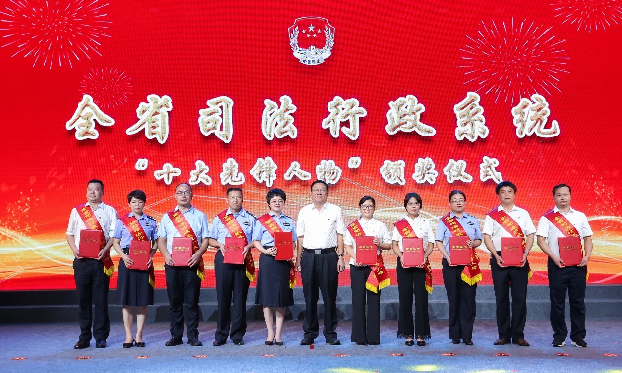 江西省委常委、政法委書記尹建業(yè),省政府副省長(zhǎng)、省公安廳廳長(zhǎng)秦義,省委政法委常務(wù)副書記林強(qiáng),省政府副秘書長(zhǎng)吳龍強(qiáng)等出席大會(huì),并為先進(jìn)代表頒獎(jiǎng)。省司法廳黨組書記、廳長(zhǎng)張強(qiáng)致辭。