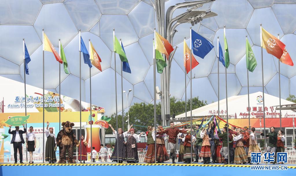 來自俄羅斯的演員在北京奧林匹克公園舉行的亞洲文明巡游活動中表演(2019年5月16日攝)。新華社記者 殷剛 攝
