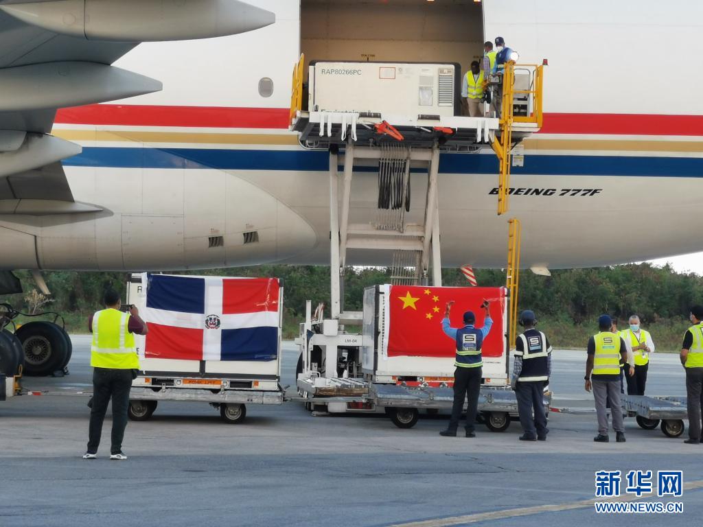 這是2021年3月17日,運載中國援助的新冠疫苗等物資的飛機(jī)抵達(dá)多米尼加首都圣多明各。新華社發(fā)(中國駐多米尼加大使館供圖)